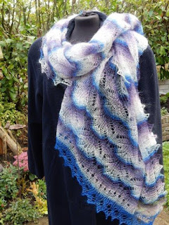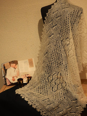 Lelietjes van Dalen gebreid in een echte weddingring shawl.