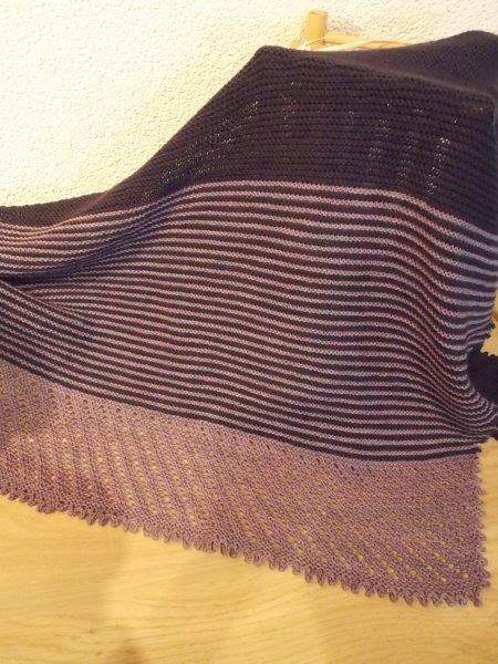 aubergine wollen, grote stola.Wat dikker. ( geen kanteffect dus.)